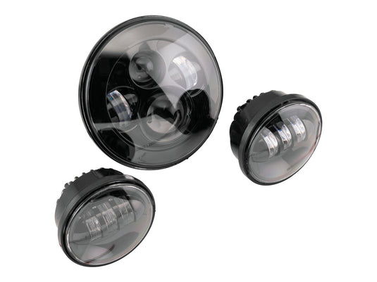 7in. HeadLight & 4.5in. Passing Lamp Bundle – Black. Fits Most H-D with 7in. Headlights & 4.5in. Passing Lamps.